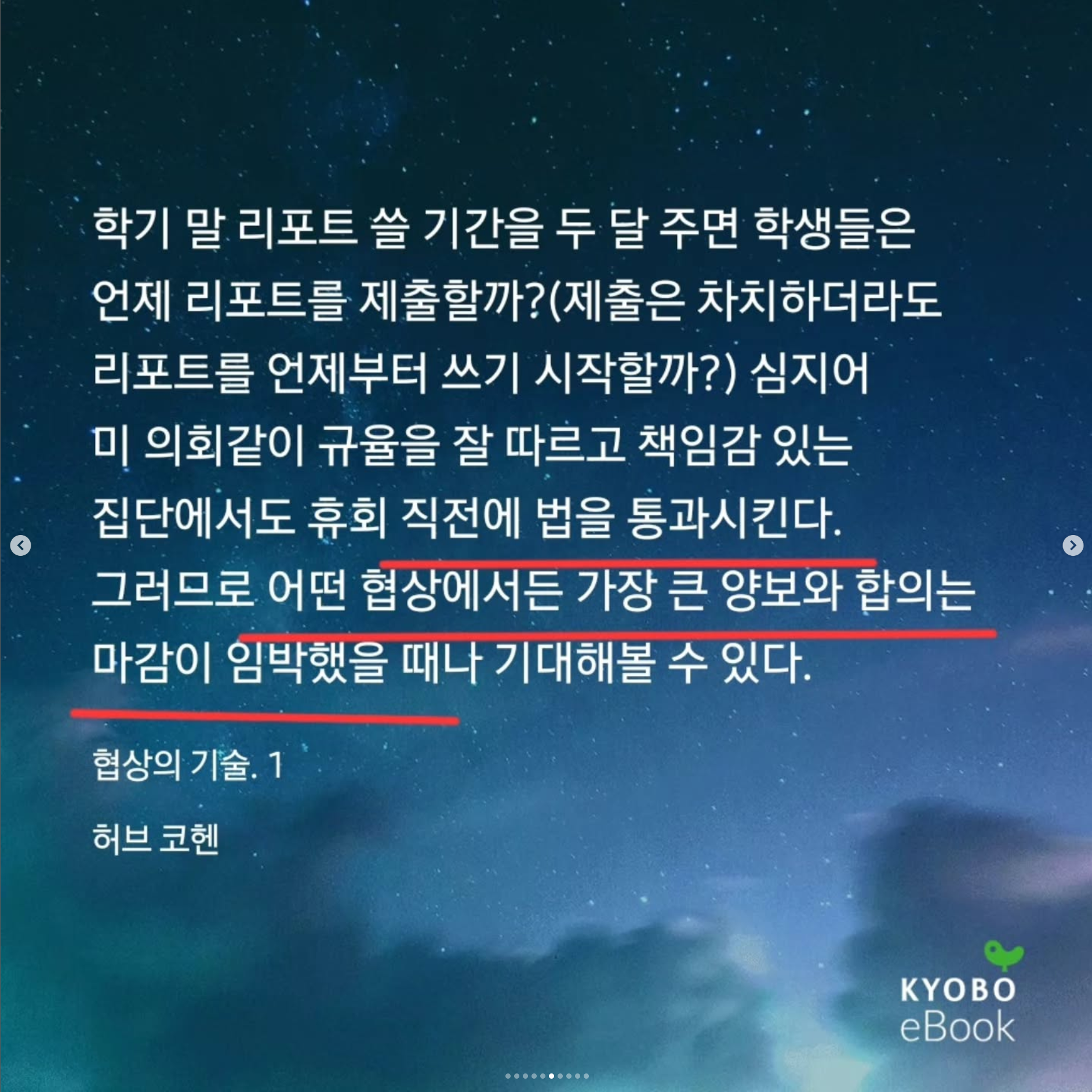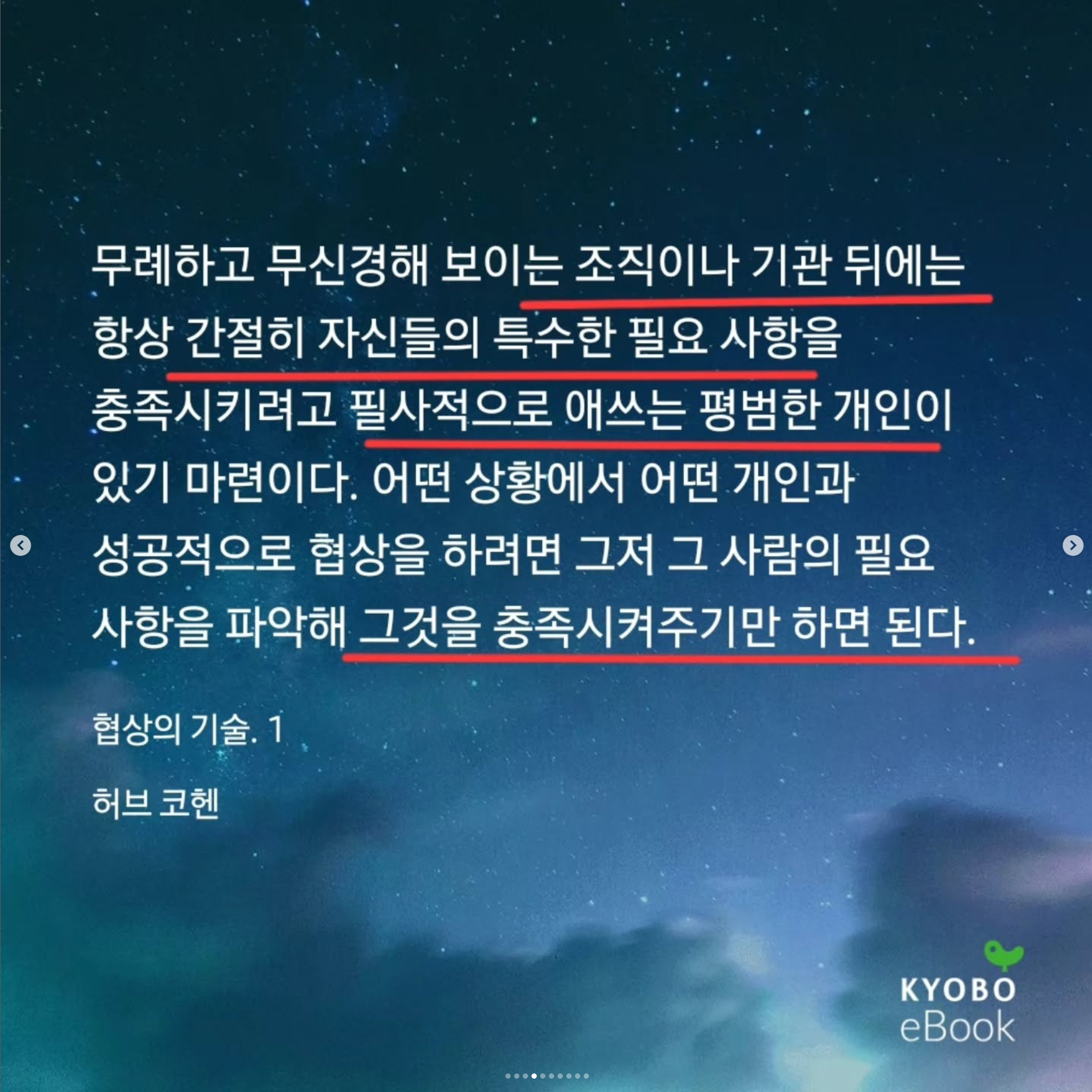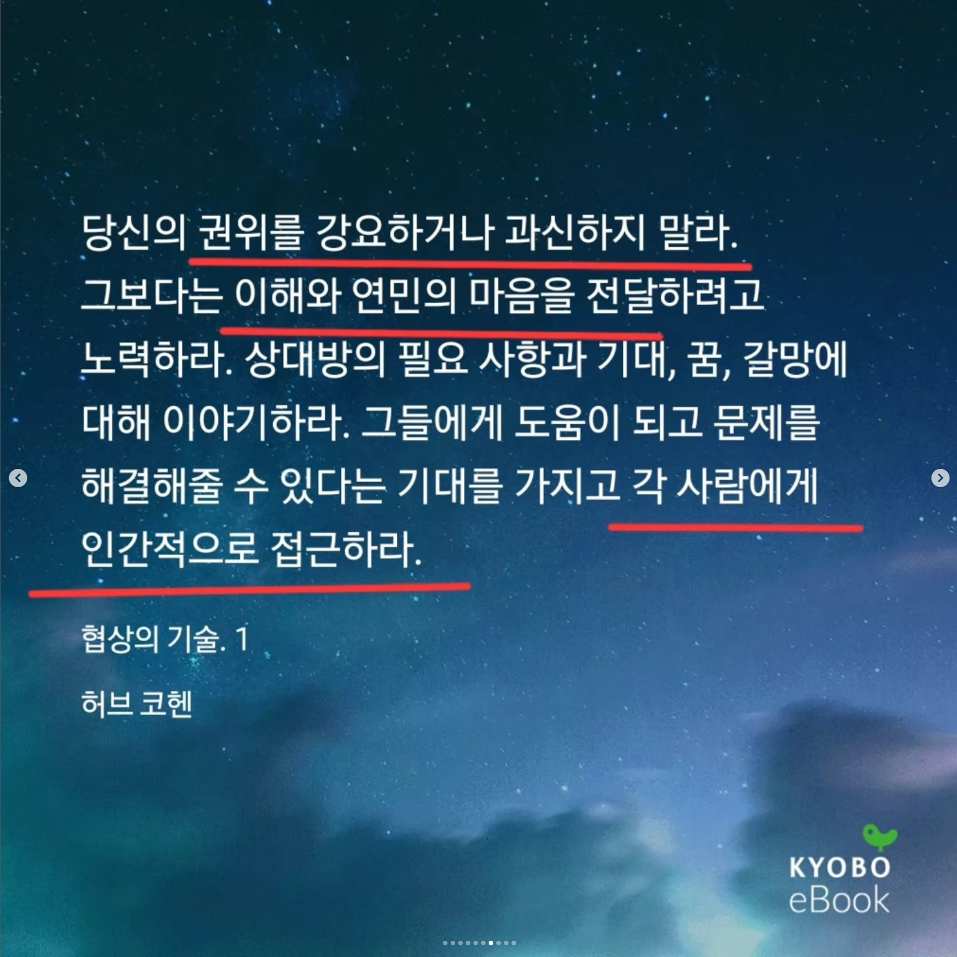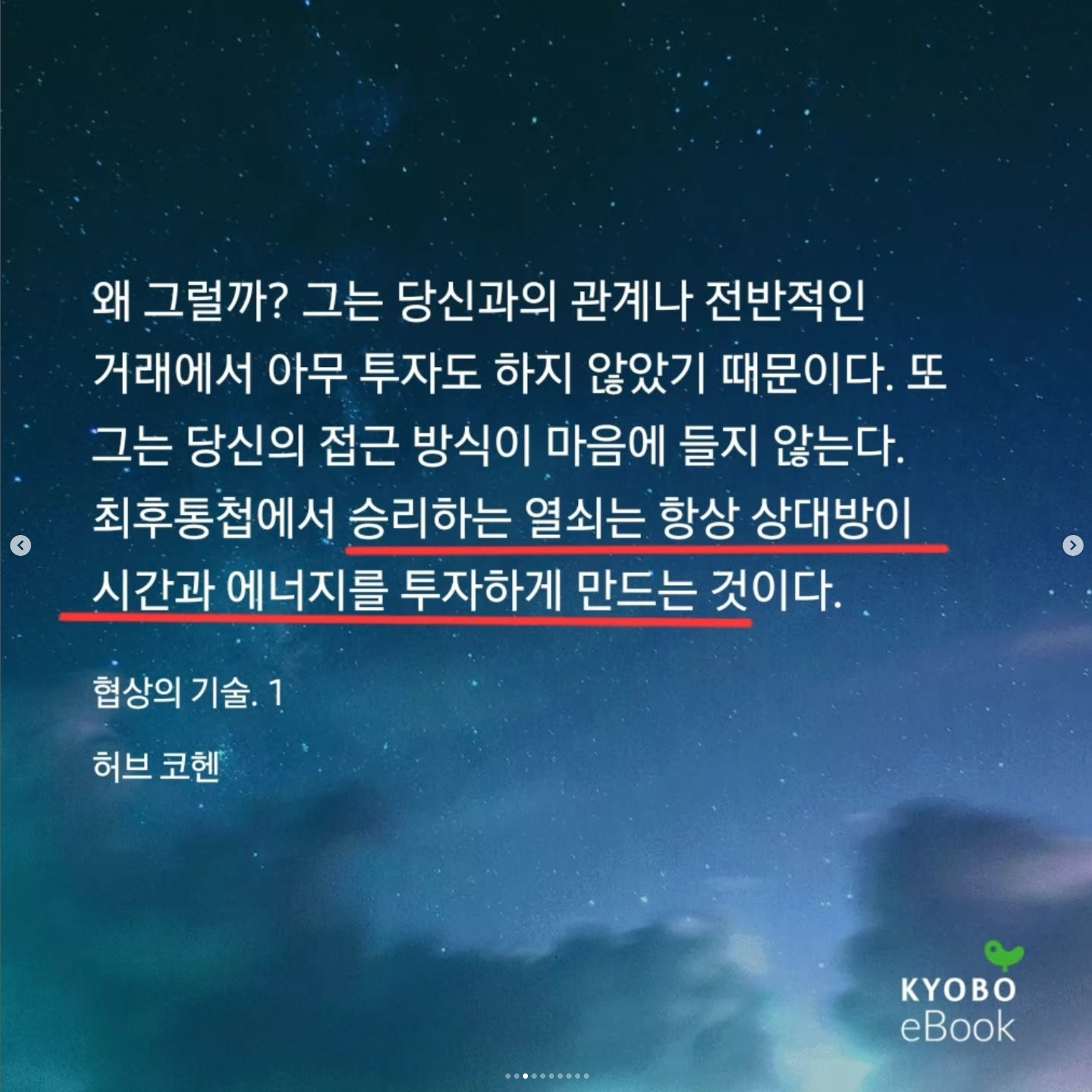 협상의 본질에 대해 다시 생각해보게 되고 중요한 순간마다 다시금 읽게 되는 책이다.