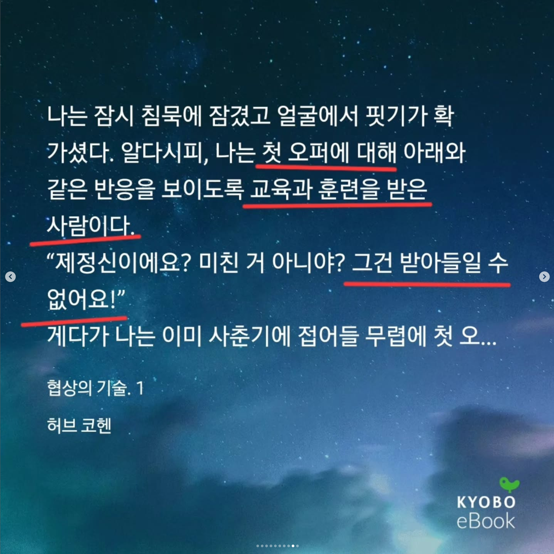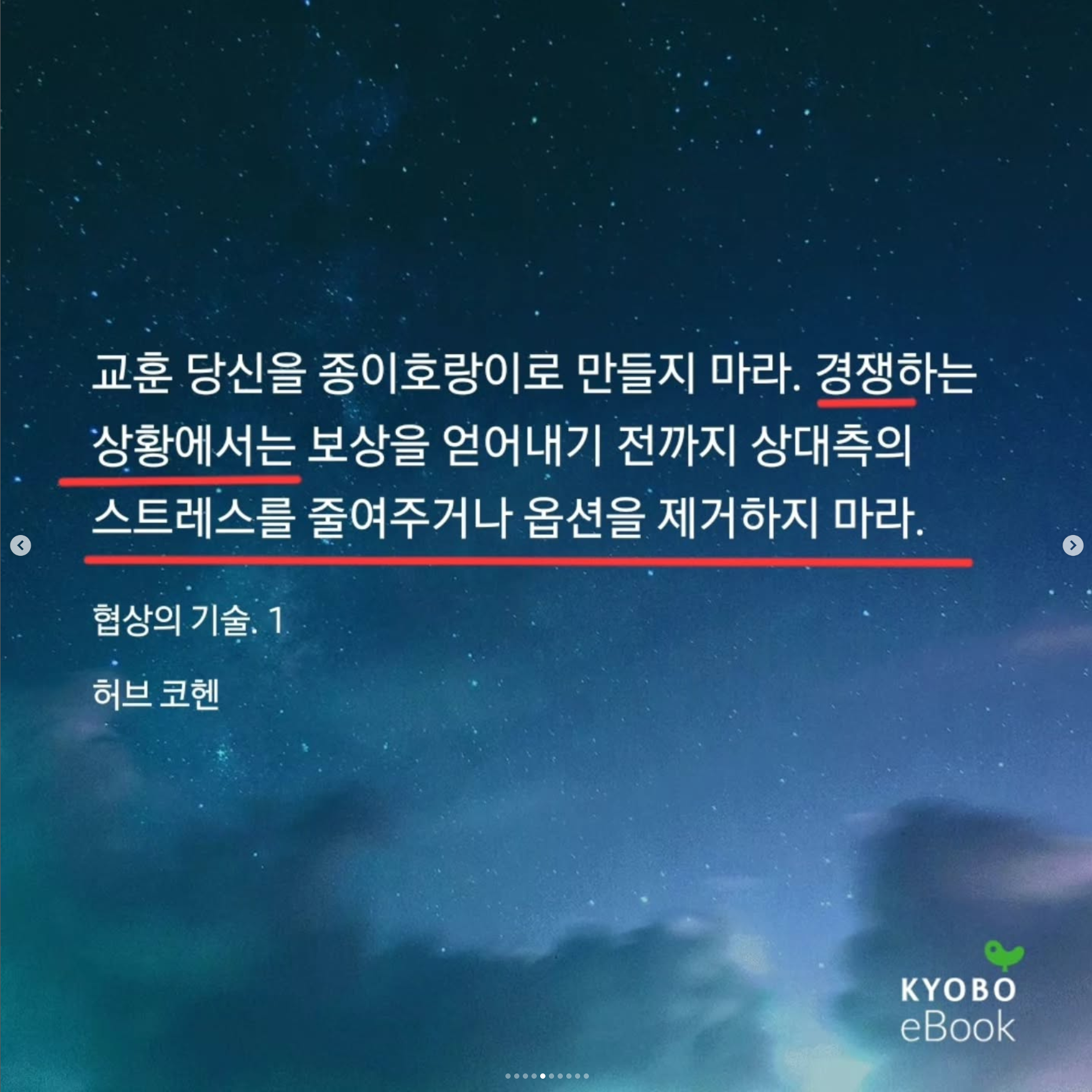 일생에 작은 것부터 큰 것까지 수많은 협상을 마주하게 될 때마다 큰 도움이 되는 책이다.