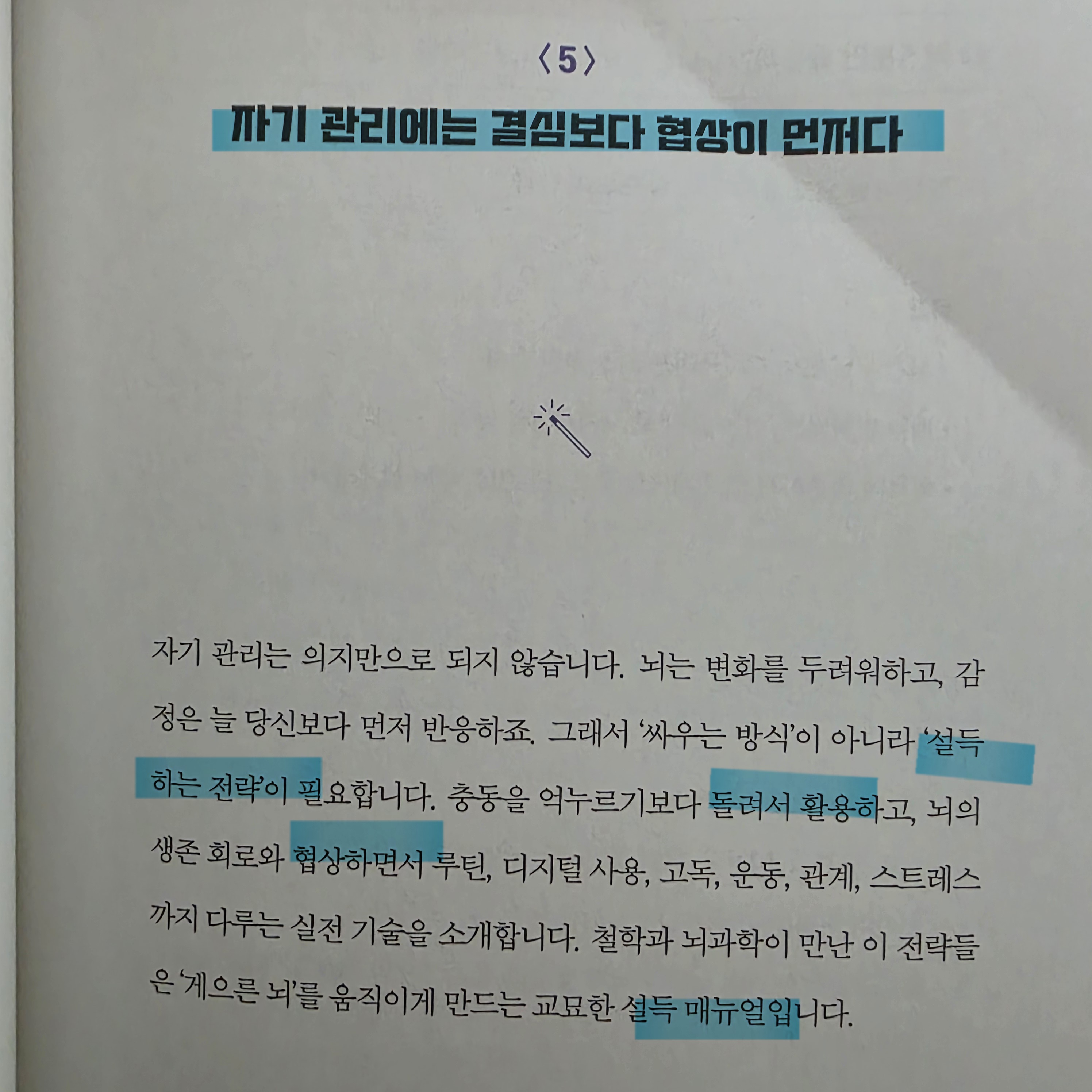 이 책에서 인상 깊었던 것은 단 한 구절인데, 자기관리는 '결심보다 협상'이라는 것이다. 두루뭉실한 의지력은 지워버리고 구체적인 환경을 컨트롤하라는 말이다.