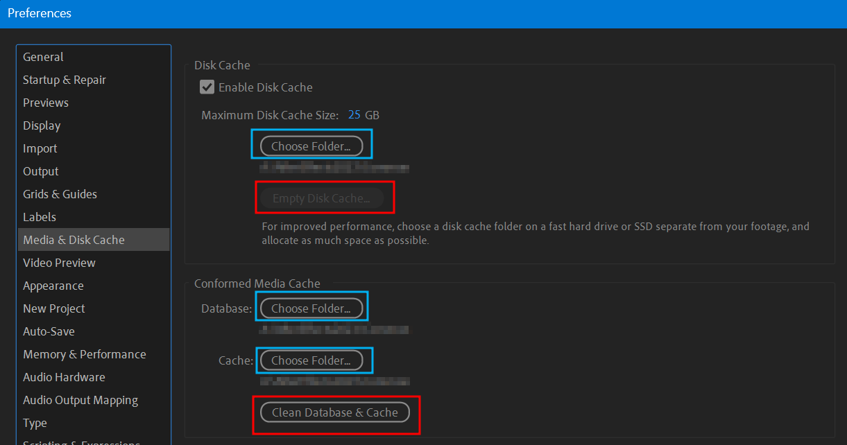 | Cache (Clean Database & Cache) | 소스 미디어의 빠른 접근 및 처리 (주로 오디오) | 변환된 임시 미디어 파일 (.cfa, .pek 등) | 오디오 파형 표시, 탐색 |