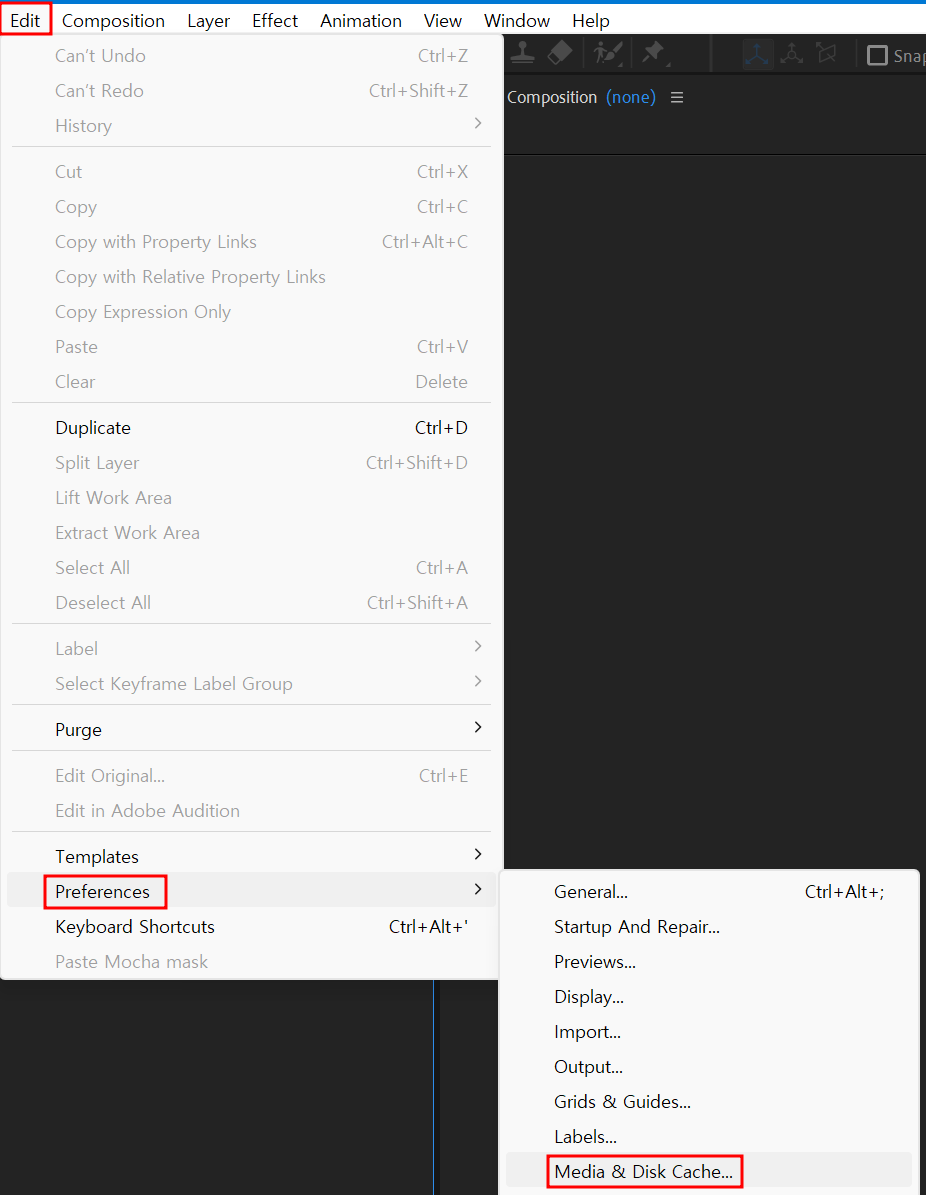 [AfterEffects] 에프터이펙트 디스크 캐시 삭제하는 법 (용량 확보)