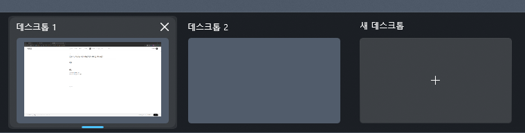 단축키로 데스크탑을 전환하려면 window + ctrl + 좌 또는 우 방향키로 전환
